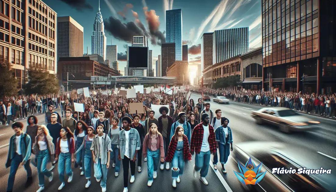 Após um tiroteio em uma escola nos EUA, estudantes criaram o movimento “March for Our Lives” para lutar por leis mais rigorosas de controle de armas. Essa iniciativa trouxe atenção para questões de segurança nas escolas e mostrou como a juventude pode se mobilizar para mudança social.